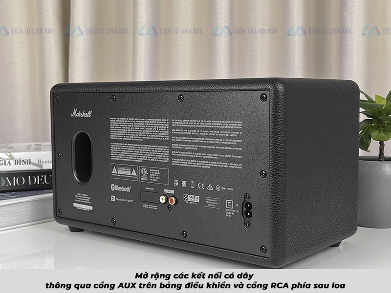 Cổng AUX được nhà sản xuất bố trí ở trên bảng điều khiển của thiết bị, để người dùng có thể lựa chọn kết nối thêm với các thiết bị không có Bluetooth như laptop, TV, PC,...và có thể đa dạng hơn các bài nhạc yêu thích và có sự linh hoạt trong việc lựa chọn kết nối, chơi nhạc trong mọi tình huống. Thậm chí, Stanmore II cũng hỗ trợ cả kết nối mâm than để bạn có thể thưởng thức những bản ghi vinyl yêu thích.